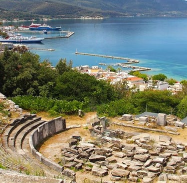 Insula a fost locuita pentru prima data in timpul epocii neolitice de fenicieni. Dupa cum spune mitul, fenicienii au fondat orase, in fiecare regiune, prin care au trecut. In timp ce cautau drumul catre Europa, sora liderului lor, a fost rapita de Zeus fiind dusa in Thassos, acesta transformandu-se intr-un taur alb, innebunit de dragostea pentru ea.
